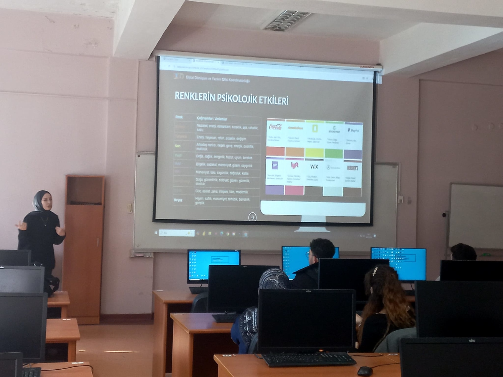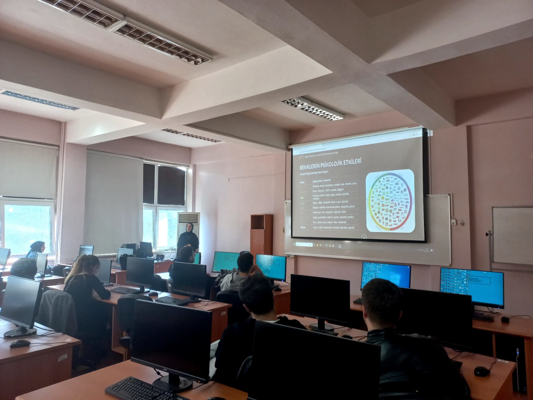 Eğitimde tasarımın temel taşlarından biri olan renk seçimi ele alınarak doğru renk kombinasyonları oluşturma yöntemleri, renk paleti hazırlama araçları ve renklerin psikolojik etkileri katılımcılarla paylaşıldı. Doğru renk kullanımının marka algısı üzerindeki etkisi uygulamalı örneklerle desteklendi.