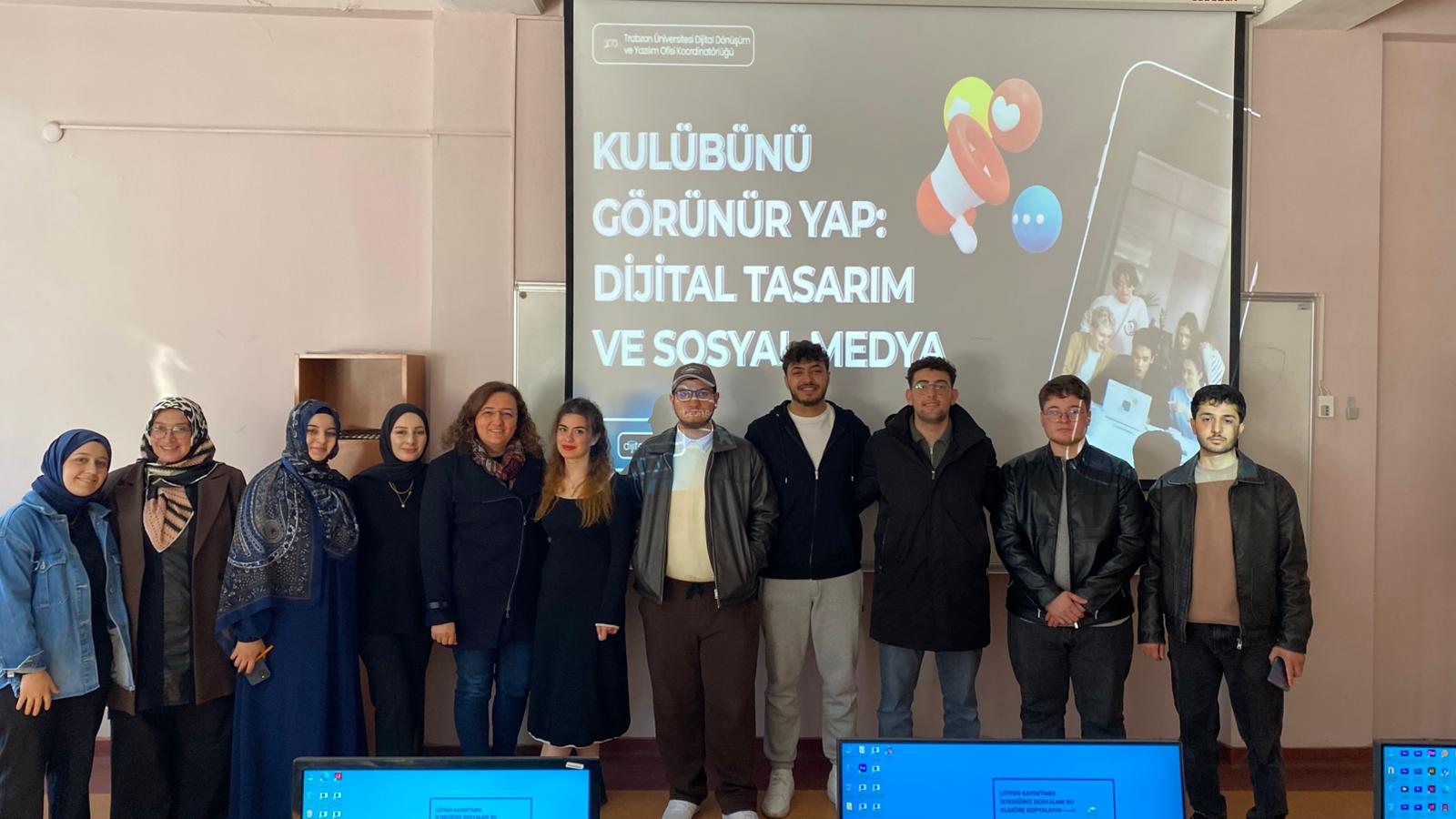 Dijital Dönüşüm ve Yazılım Ofisi Koordinatörlüğü tarafından, 24 Şubat 2025 tarihinde, kulüplerin dijital dünyada daha güçlü ve profesyonel bir görünüm kazanmasını hedefleyen “Kulübünü Görünür Yap: Dijital Tasarım ve Sosyal Medya” başlıklı eğitim programı gerçekleştirildi.