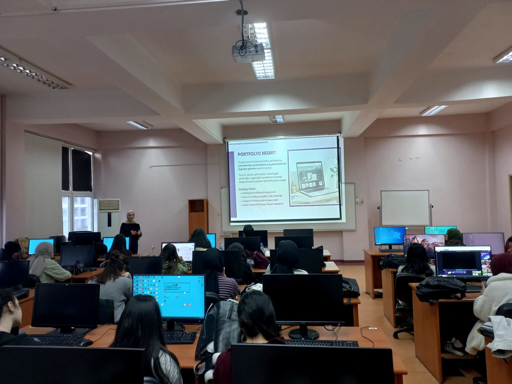 Programda portfolyo kavramı, portfolyo türleri ile dijital ve fiziksel portfolyo oluşturma süreçleri de kapsamlı şekilde işlendi. Katılımcılara portfolyo içeriği ve tasarımına yönelik pratik öneriler sunuldu.