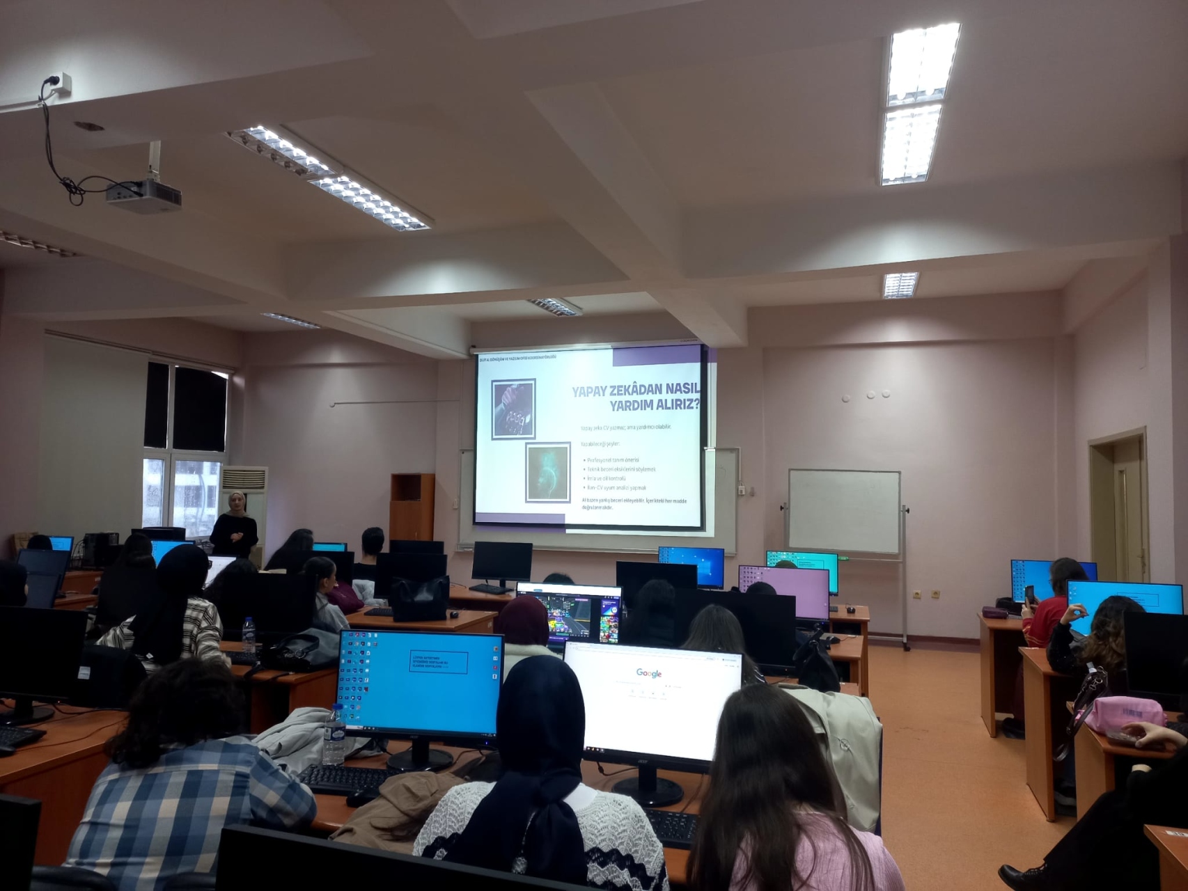 Eğitimin son bölümünde Canva kullanılarak profesyonel öz geçmiş hazırlama süreci uygulamalı olarak gerçekleştirildi ve katılımcılar öğrendiklerini doğrudan deneyimleme fırsatı buldu.